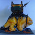 The black leather was really easy to achieve too. I just painted the strips black, painted over the top with grey and then used a finer brush to paint a thin black line through the centre. Quickest piece of highlighting I think I've ever done. The eyes, lip and scar were created through purple and red washes followed by a final bleach bone highlight of the features. Pure white was used to pick out his two protruding teeth.
